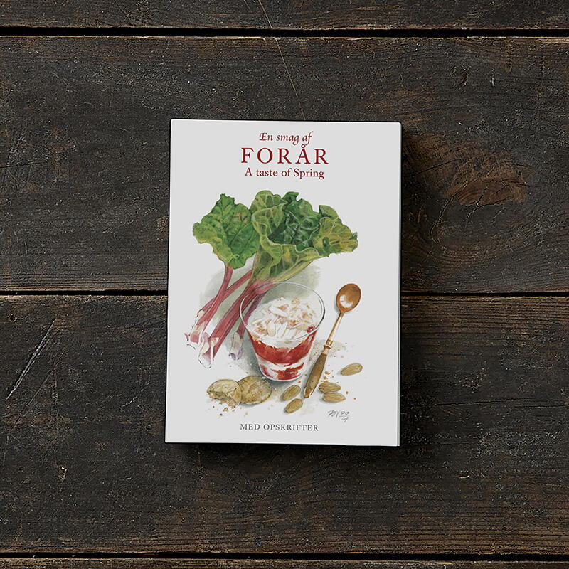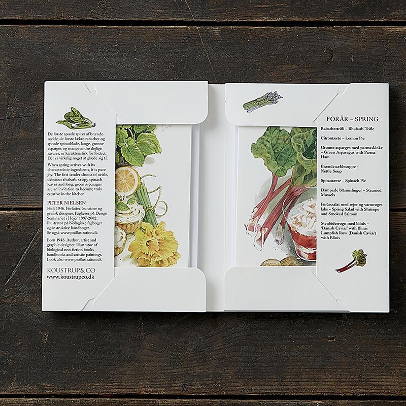 Kortmappen "En smag af forår" indeholder 8 dobbeltkort med tilhørende kuverter.