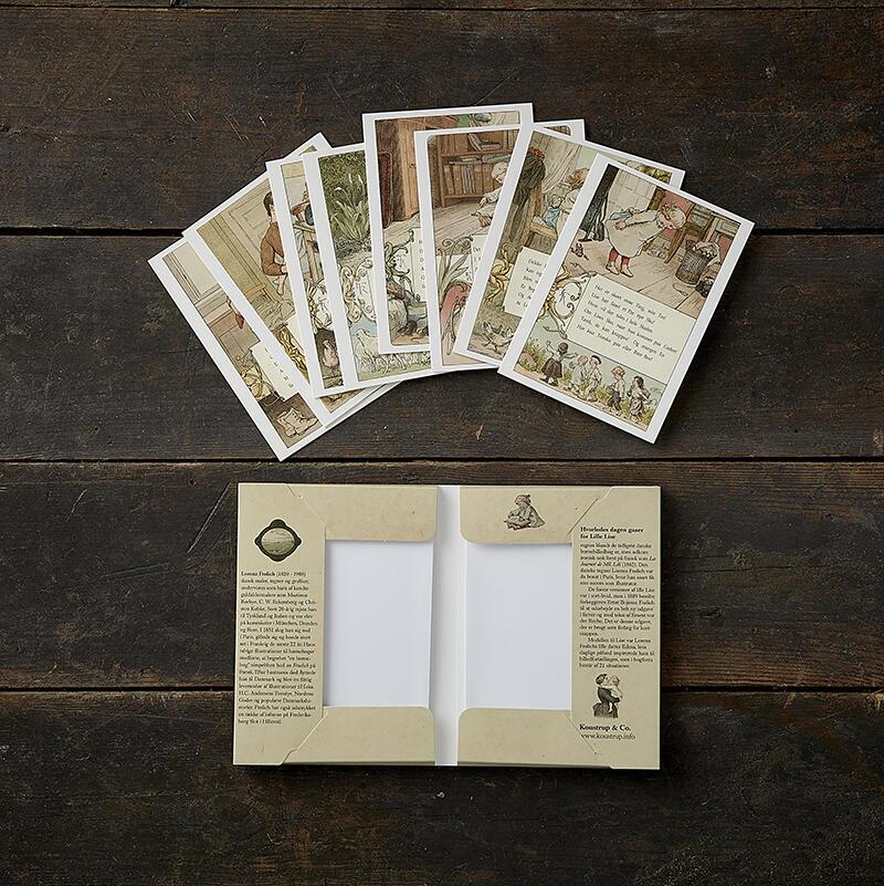 Kvalitetskort med illustrationer fra "Hvorledes dagen gaaer for Lille Lise" af Lorenz Frølich.