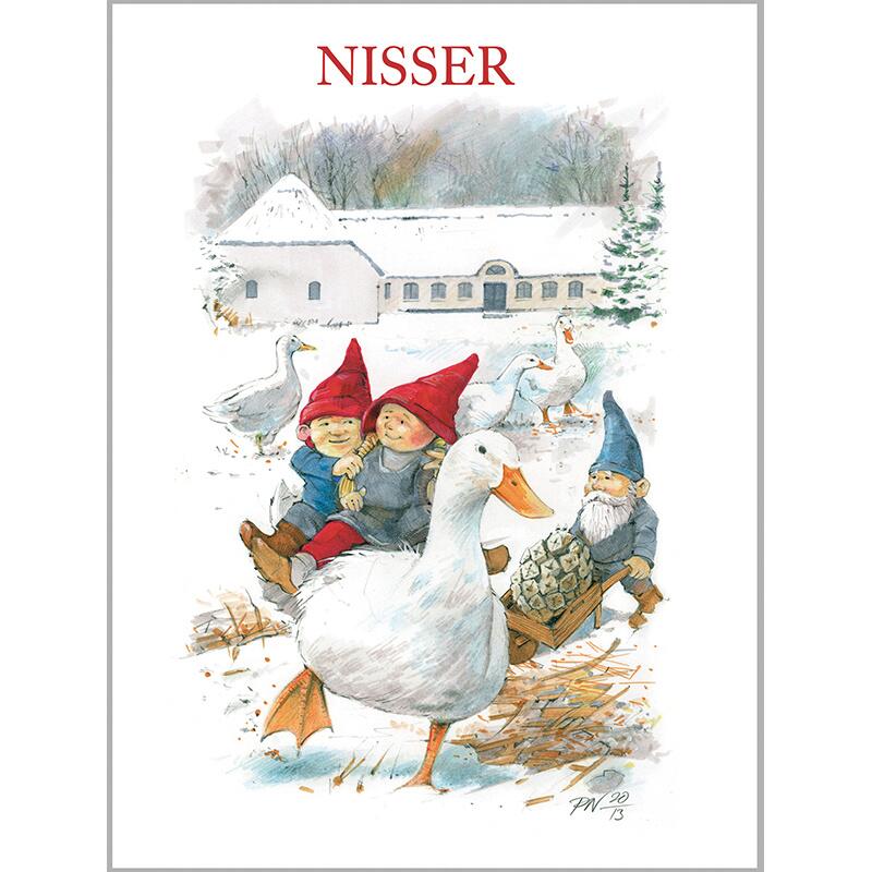 Kvalitetskort med motiver af nisser illustreret af Peter Nielsen.