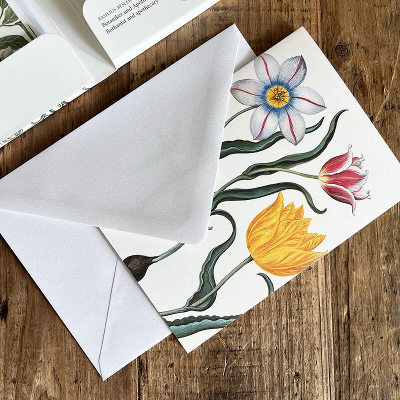 Kortmappe med motiver fra renæssancen illustreret af den tyskfødte Basilius Besler, erfaren botaniker og apoteker.