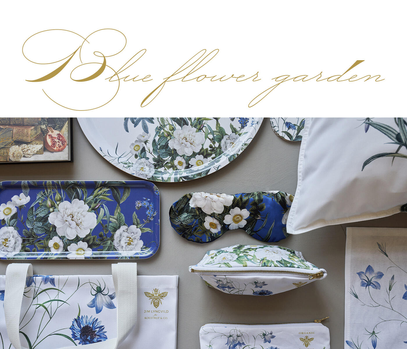 En moderne, tidsløst og klassisk kollektion med motiver af florlette klokkeblomster, charmerende hvide roser og skønne sommerfugle. Blue Flower Garden er skabt i samarbejde med Jim Lyngvild, og kollektionen byder på en smuk blomstereksplosion i klassiske nuancer til både klædeskabet og boligen.