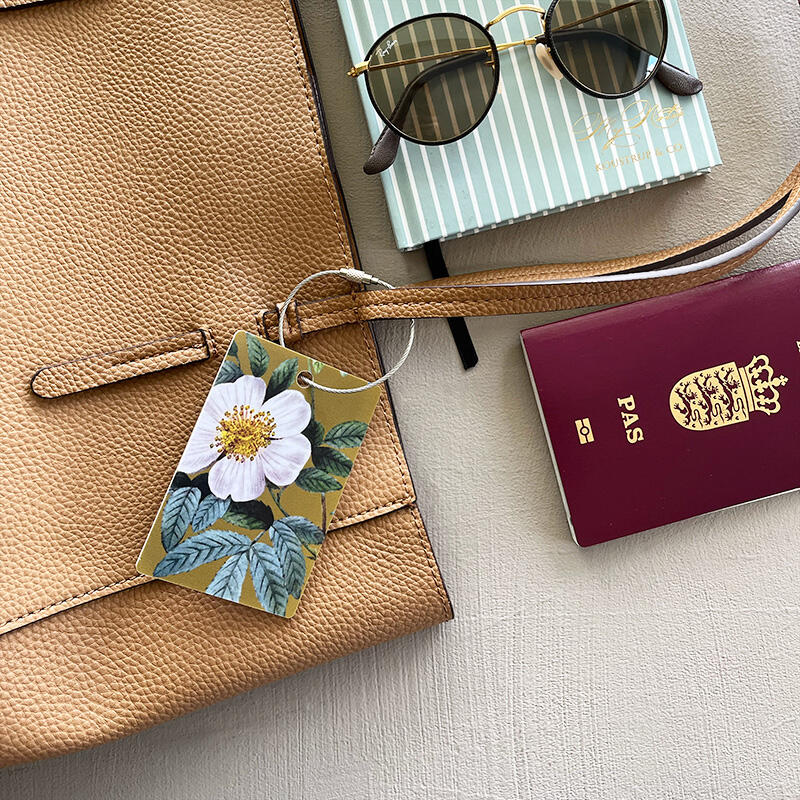 Perfekt til kufferten eller rejsetasken! Det fine kuffertmærke med smukke blomster gør det let at kende din bagage og finde dig, hvis din baggage skulle være mistet.