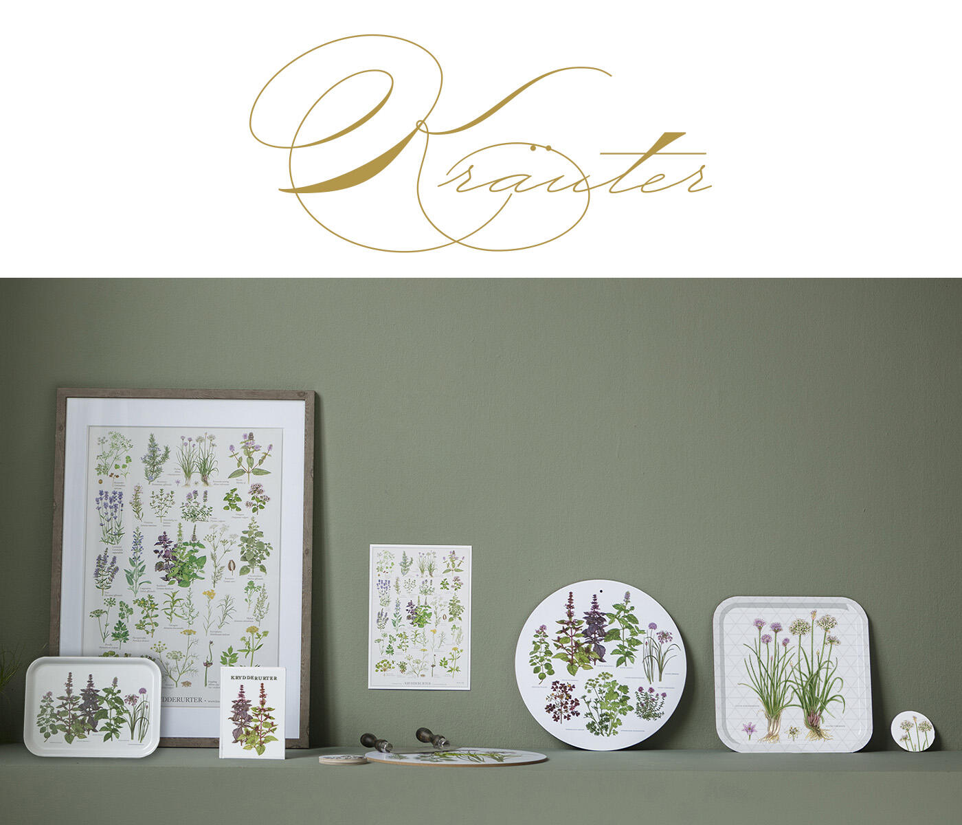 Es ist einfach, schöne Kräuter anzubauen, und sie dienen als hervorragende Geschmacksverstärker in der Küche, wodurch einfache Gerichte auf ein neues Niveau gehoben werden. Die Kollektion umfasst informative Poster, schöne Tabletts, eine Kartenmappe und mehrere entzückende Produkte.