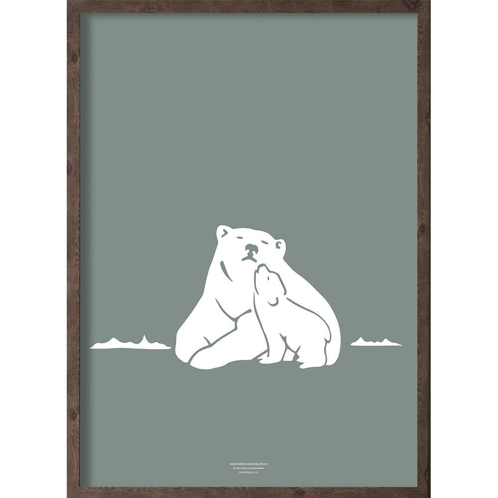 Grafisches grönländisch inspiriertes Plakat in Blau- und Weißtönen.