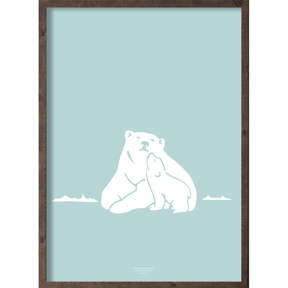 Grafisches grönländisch inspiriertes Plakat in hellblauen und weißen Tönen.