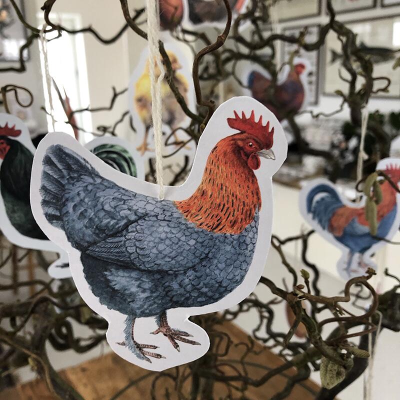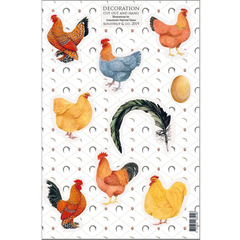 Cut sheets with chicken motifs in A3 format illustrated by Annemarie Haase.