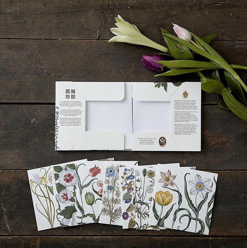 Square card folder with Renaissance motifs illustrated by German-born Basilius Besler, experienced botanist and pharmacist.