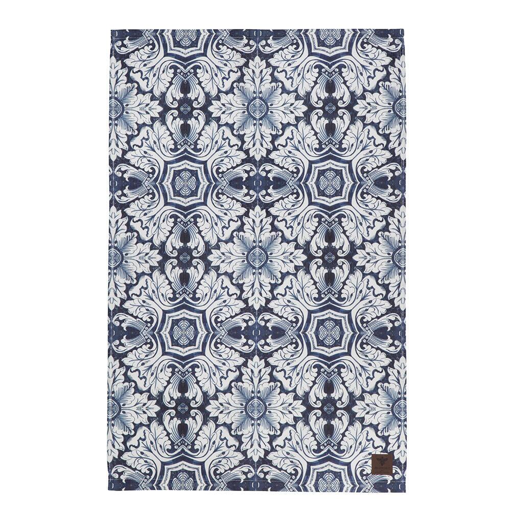 Blue elegance. with the tea towel of organic cotton with motif of old Dutch tiles from the 18th century, put together to form a beautiful pattern.