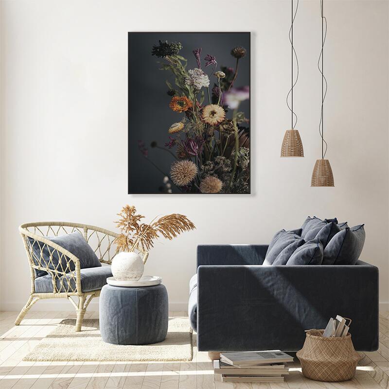 Belle impression d'art avec de belles fleurs séchées modestes, dont chacune a vécu sa jeune vie en tant que fleurs et s'est maintenant retrouvée ensemble dans une belle création séchée.