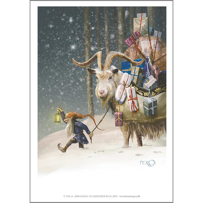 Kunsttryk af julebukken, tegnet af Per O. Jørgensen.