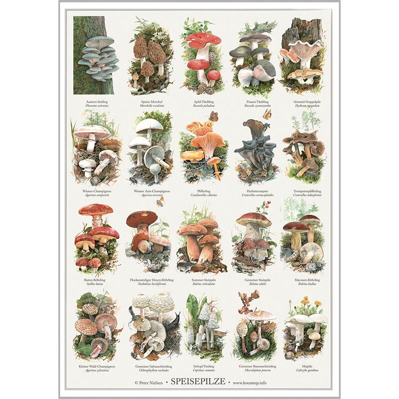 Das Poster hat 20 Illustrationen auf essbare Pilze.